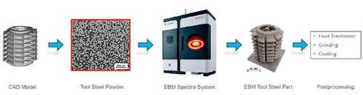 V4E的EBM AM工艺的加工路线从CAD模型,粉末和GE Additive EBM系统开始